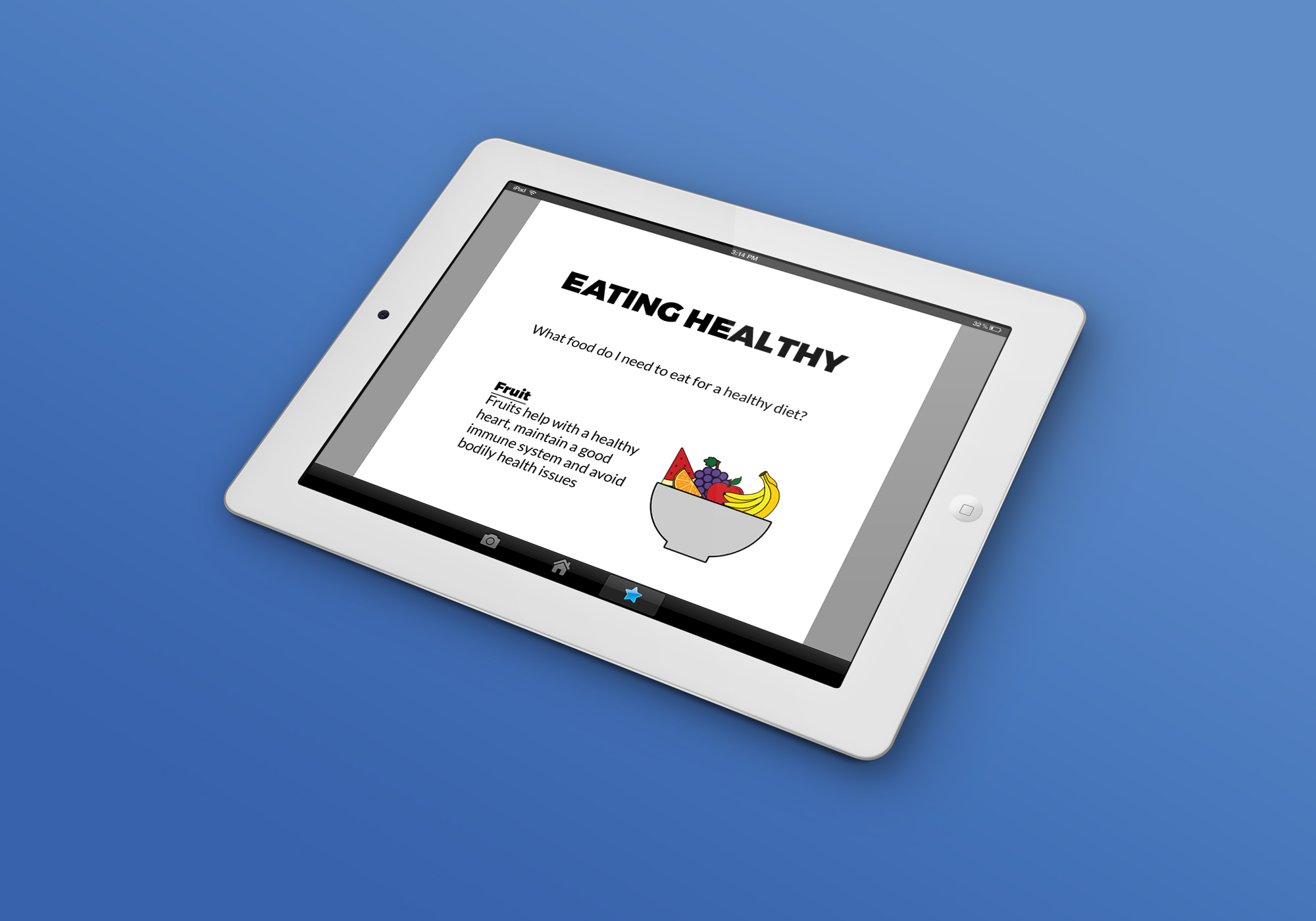 The Easy Read Toolbox strived to increase learning in the Intellectual disabilities sector of eating patterns. A set of icons of meat, vegetables, fruit, dairy and to name a few. The icons are used to focus on understanding the categories easier and use text to explain strategies for eating certain food types and the benefits of each food category.